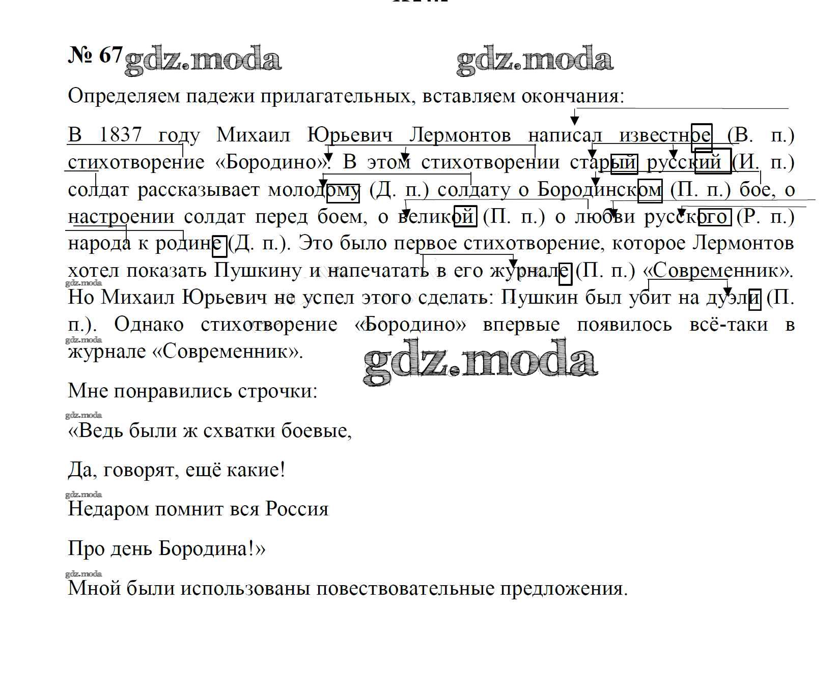 ГДЗ решение к заданию № 67 Русский язык 4 класс тетрадь для упражнений Рамзаева Т.Г. Дрофа 2013 Часть 1, Часть 2 ФГОС бесплатно на гдз.мода!
