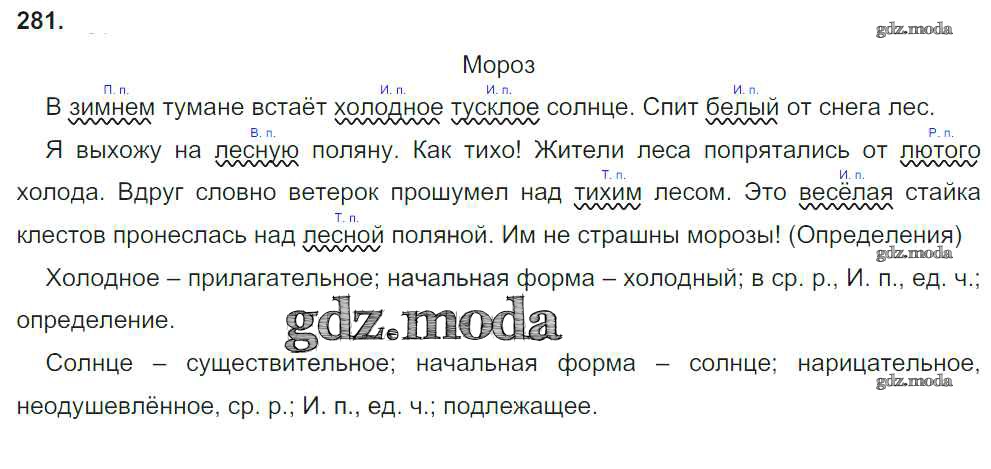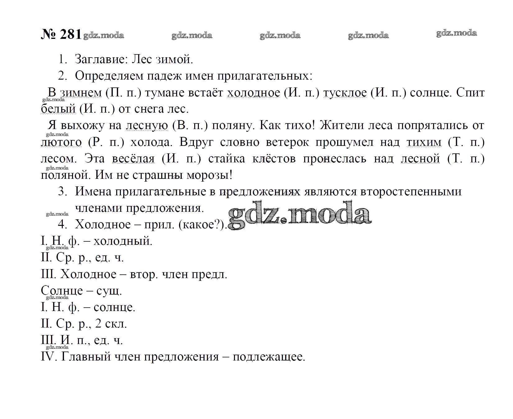 ОТВЕТ на задание № 281 Учебник по Русскому языку 4 класс Рамзаева