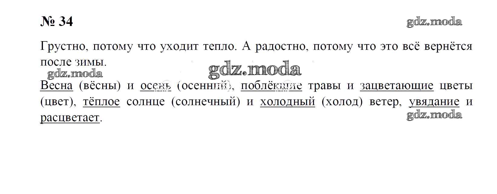 ГДЗ решение к заданию № 34 Русский язык 4 класс Рамзаева Т.Г. Дрофа 2014 Часть 1, Часть 2 ФГОС бесплатно на гдз.мода!