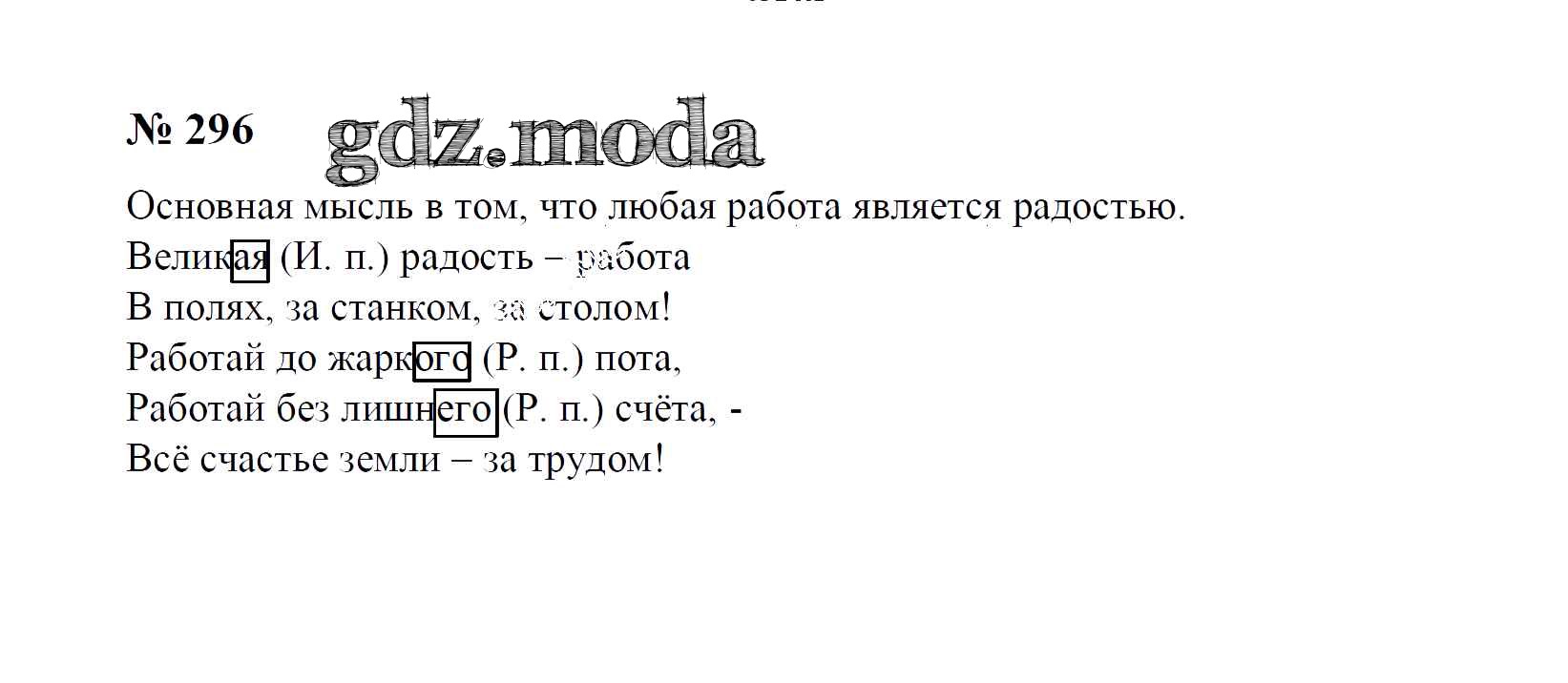ОТВЕТ на задание № 296 Учебник по Русскому языку 4 класс Рамзаева