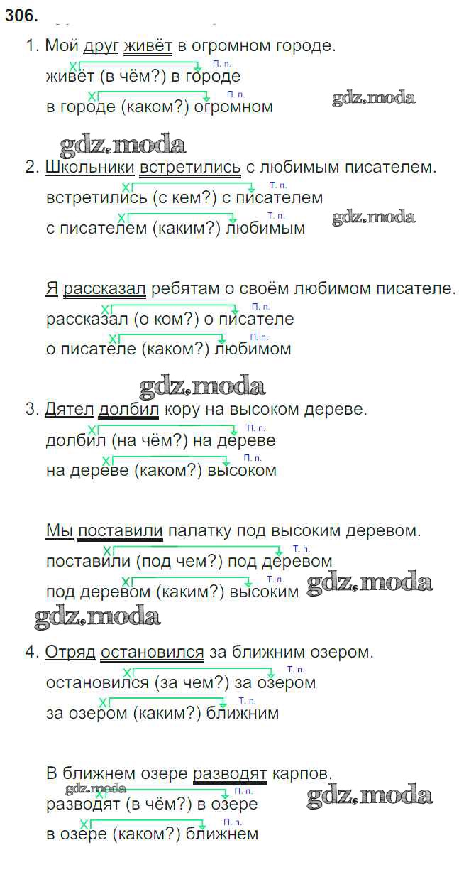 ОТВЕТ на задание № 306 Учебник по Русскому языку 4 класс Рамзаева