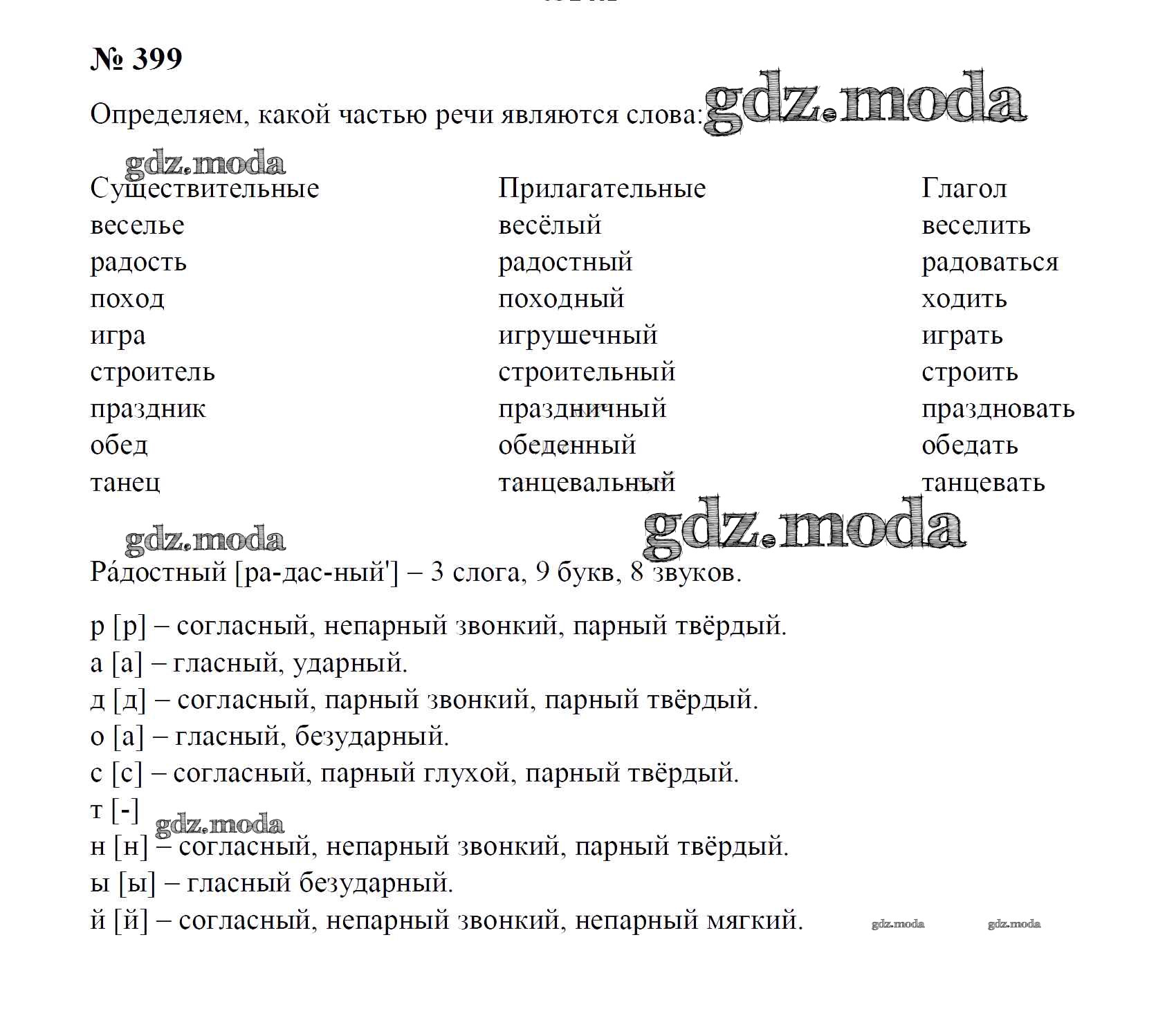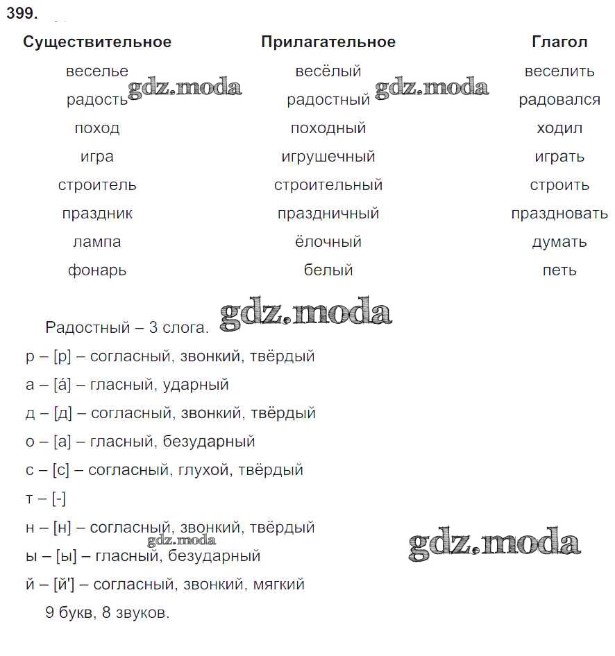 ОТВЕТ на задание № 399 Учебник по Русскому языку 4 класс Рамзаева