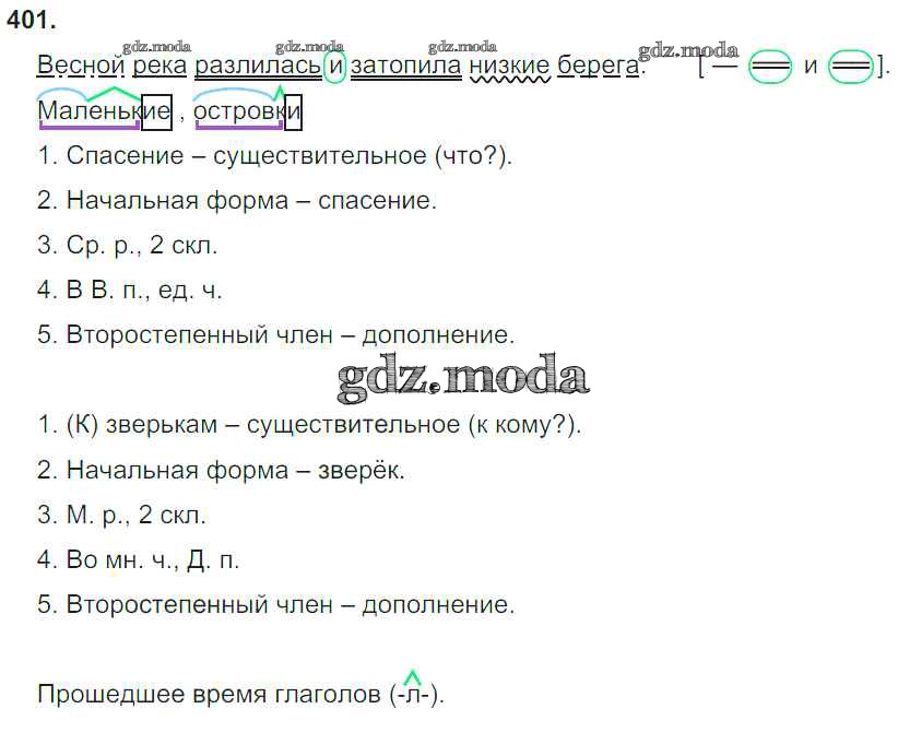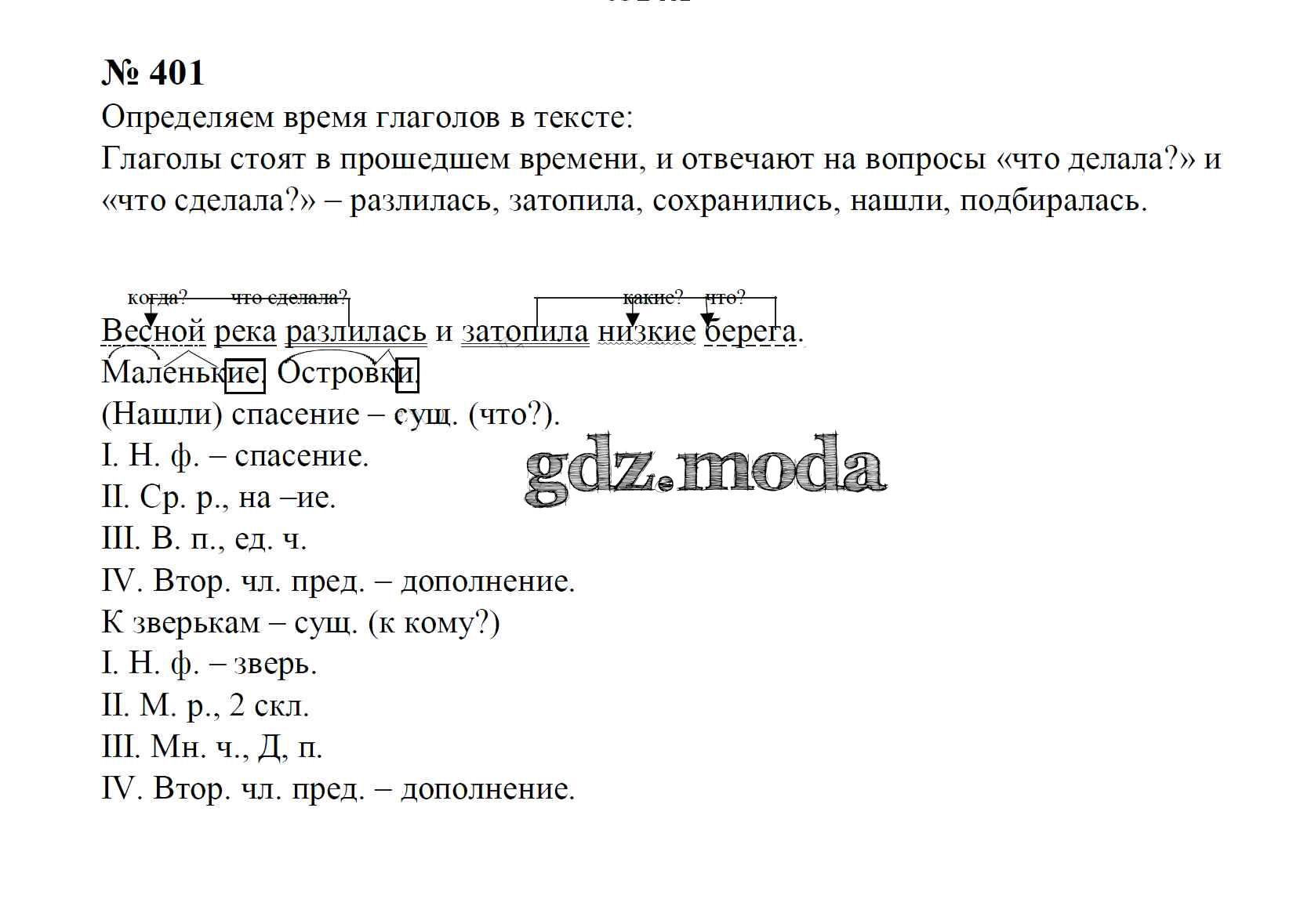 ОТВЕТ на задание № 401 Учебник по Русскому языку 4 класс Рамзаева