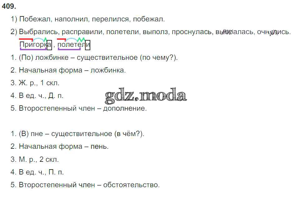 ОТВЕТ на задание № 409 Учебник по Русскому языку 4 класс Рамзаева