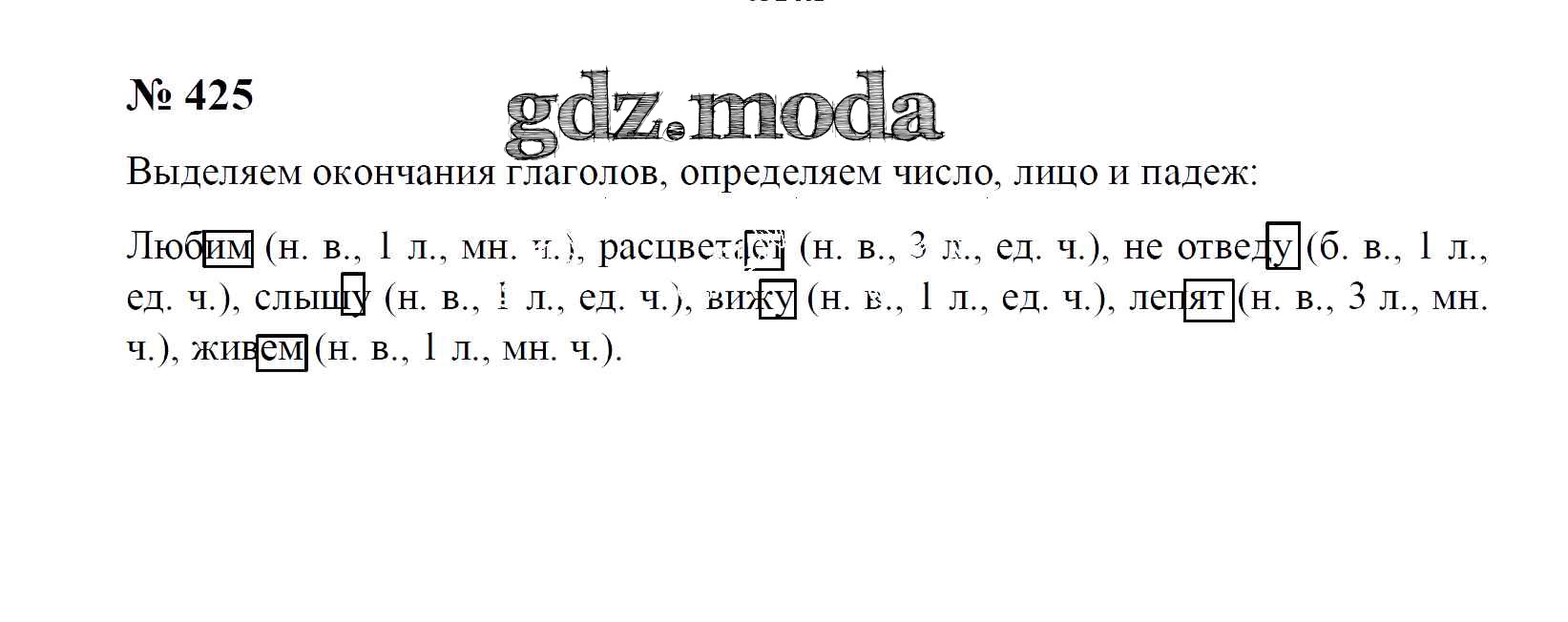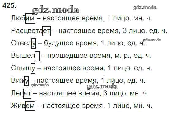ОТВЕТ на задание № 425 Учебник по Русскому языку 4 класс Рамзаева