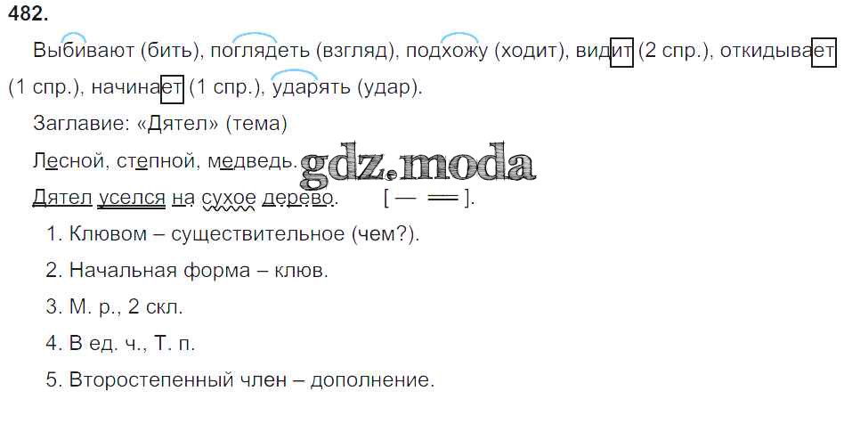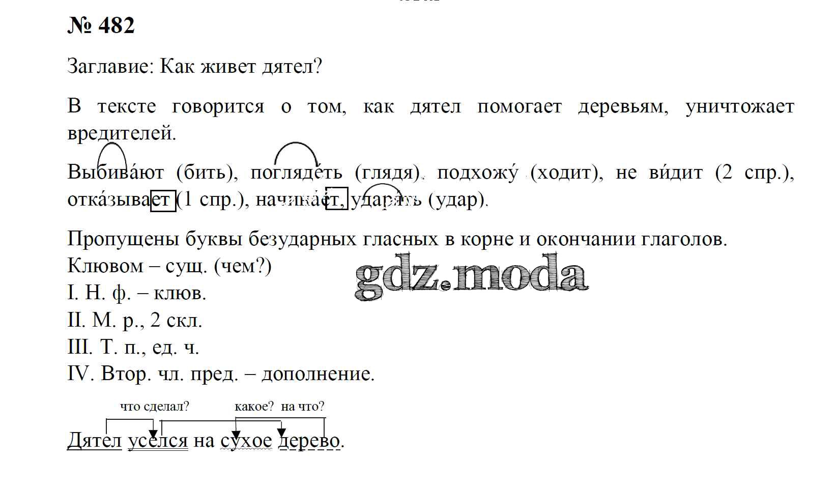 ГДЗ решение к заданию № 482 Русский язык 4 класс Рамзаева Т.Г. Дрофа 2014 Часть 1, Часть 2 ФГОС бесплатно на гдз.мода!