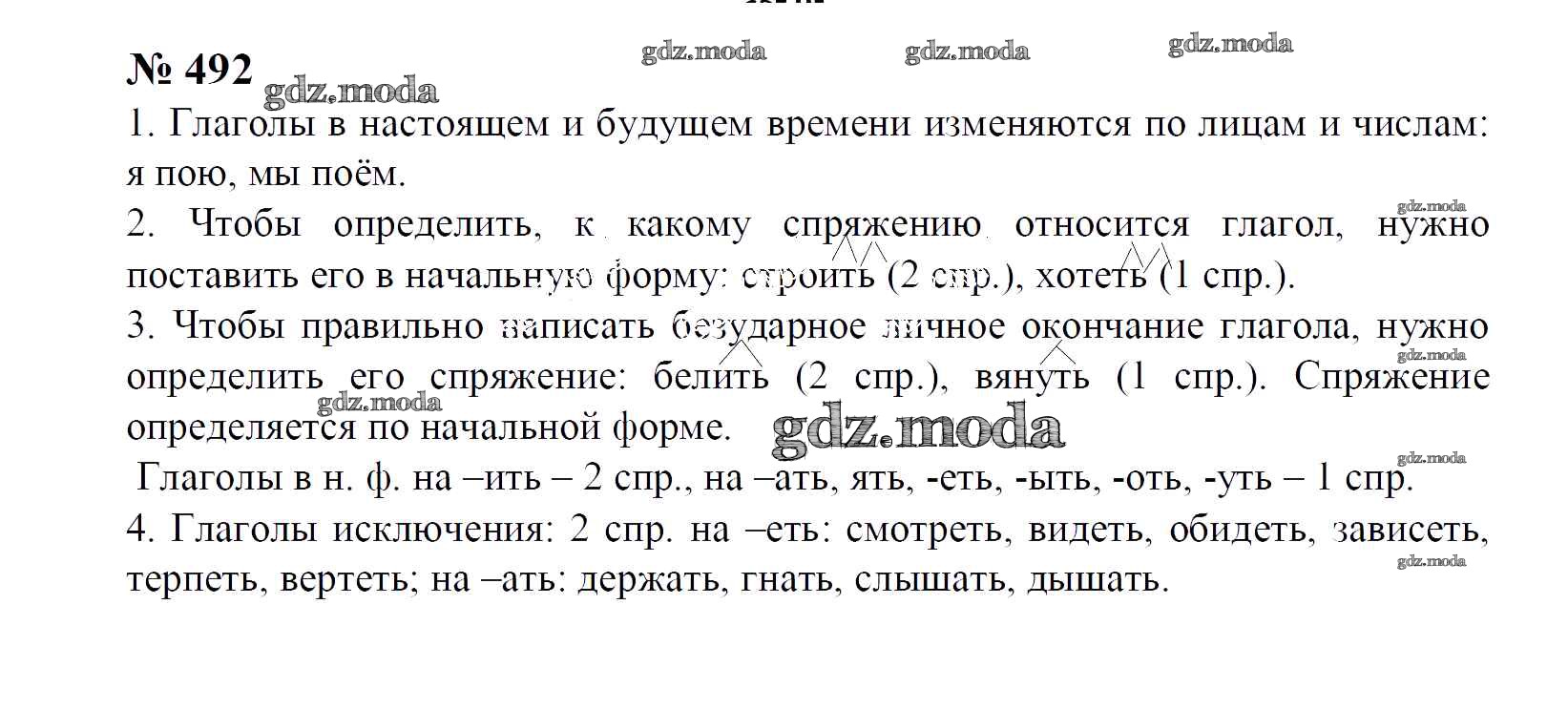 ГДЗ решение к заданию № 492 Русский язык 4 класс Рамзаева Т.Г. Дрофа 2014 Часть 1, Часть 2 ФГОС бесплатно на гдз.мода!