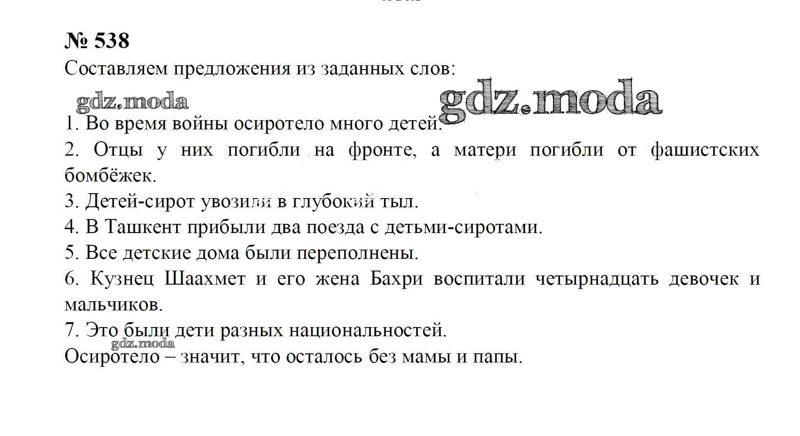 ОТВЕТ на задание № 538 Учебник по Русскому языку 4 класс Рамзаева