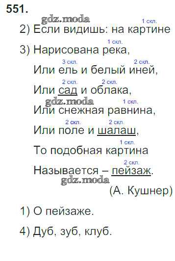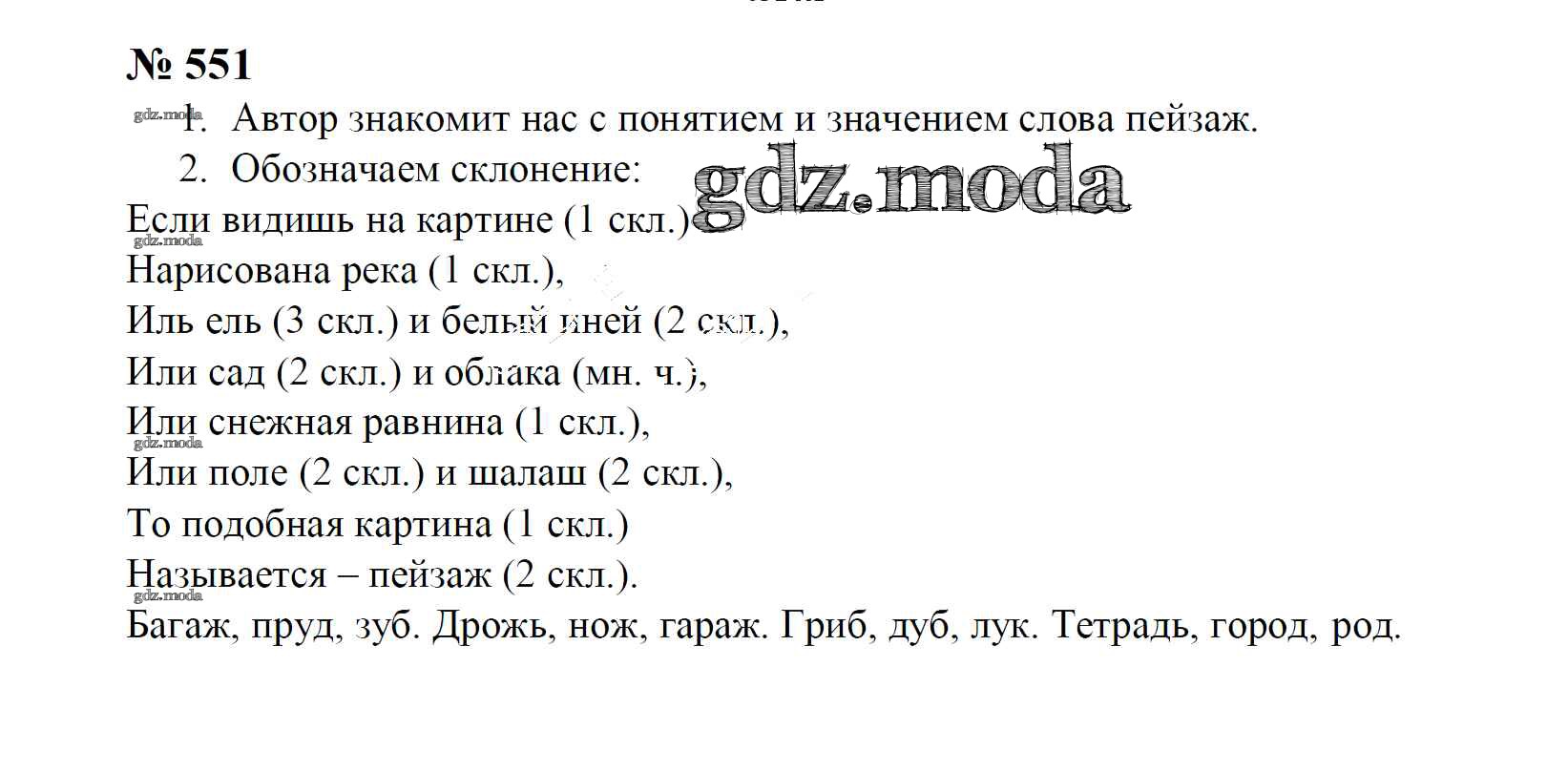 ОТВЕТ на задание № 551 Учебник по Русскому языку 4 класс Рамзаева