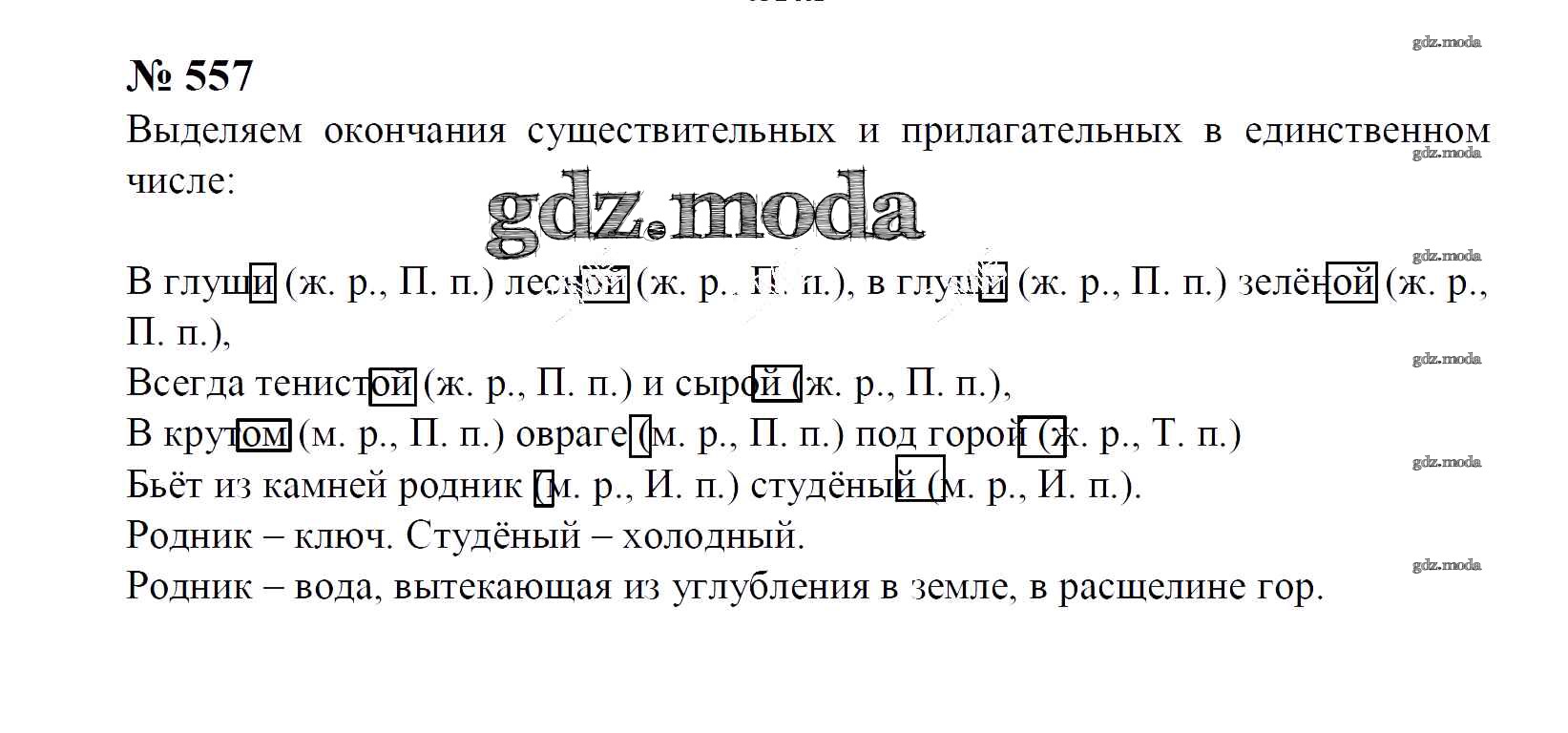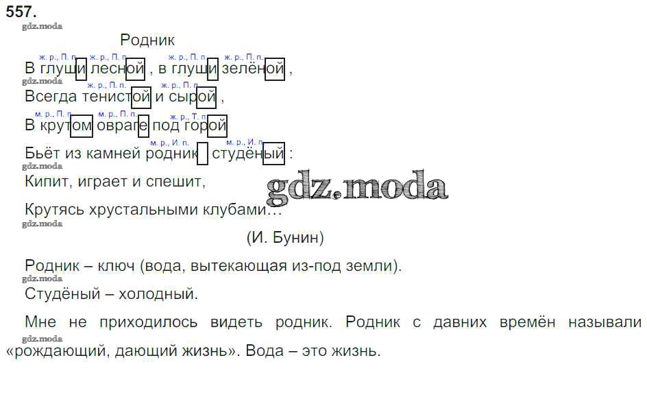 ОТВЕТ на задание № 557 Учебник по Русскому языку 4 класс Рамзаева