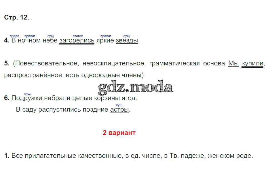 ГДЗ решение к заданию № 12 Русский язык 4 класс тетрадь для контрольных работ Романова В.Ю. Вентана-граф 2018 ФГОС бесплатно на гдз.мода!