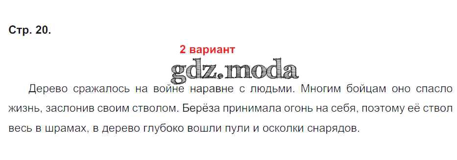 ГДЗ решение к заданию № 20 Русский язык 4 класс тетрадь для контрольных работ Романова В.Ю. Вентана-граф 2018 ФГОС бесплатно на гдз.мода!