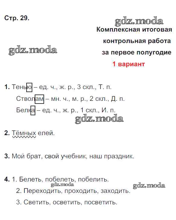 ГДЗ решение к заданию № 29 Русский язык 4 класс тетрадь для контрольных работ Романова В.Ю. Вентана-граф 2018 ФГОС бесплатно на гдз.мода!