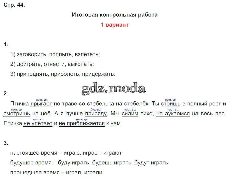 ГДЗ решение к заданию № 44 Русский язык 4 класс тетрадь для контрольных работ Романова В.Ю. Вентана-граф 2018 ФГОС бесплатно на гдз.мода!