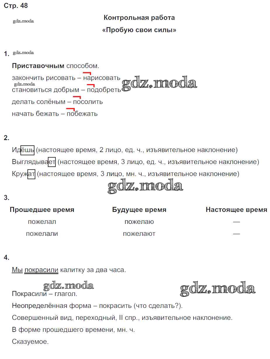 ГДЗ решение к заданию № 48 Русский язык 4 класс тетрадь для контрольных работ Романова В.Ю. Вентана-граф 2018 ФГОС бесплатно на гдз.мода!