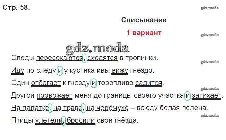 ГДЗ решение к заданию № 58 Русский язык 4 класс тетрадь для контрольных работ Романова В.Ю. Вентана-граф 2018 ФГОС бесплатно на гдз.мода!