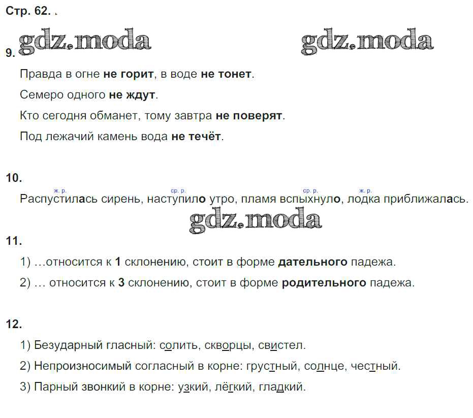 ГДЗ решение к заданию № 62 Русский язык 4 класс тетрадь для контрольных работ Романова В.Ю. Вентана-граф 2018 ФГОС бесплатно на гдз.мода!