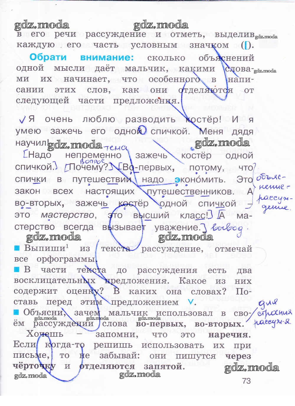 ОТВЕТ на задание № 73 Рабочая тетрадь по Русскому языку 4 класс Соловейчик Гармония