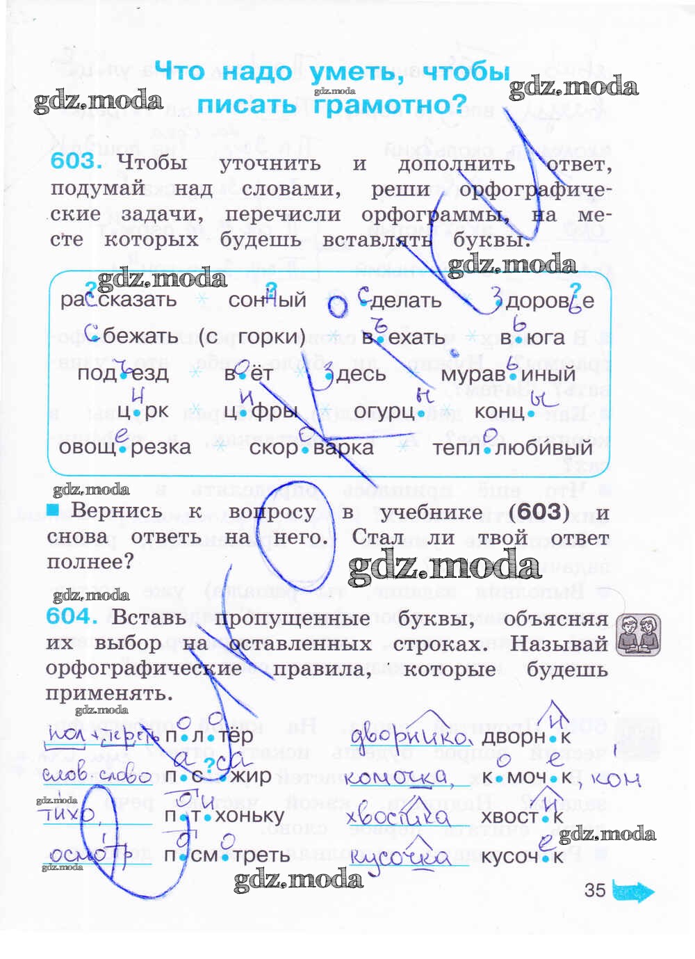 ОТВЕТ на задание № 35 Рабочая тетрадь по Русскому языку 4 класс Соловейчик Гармония