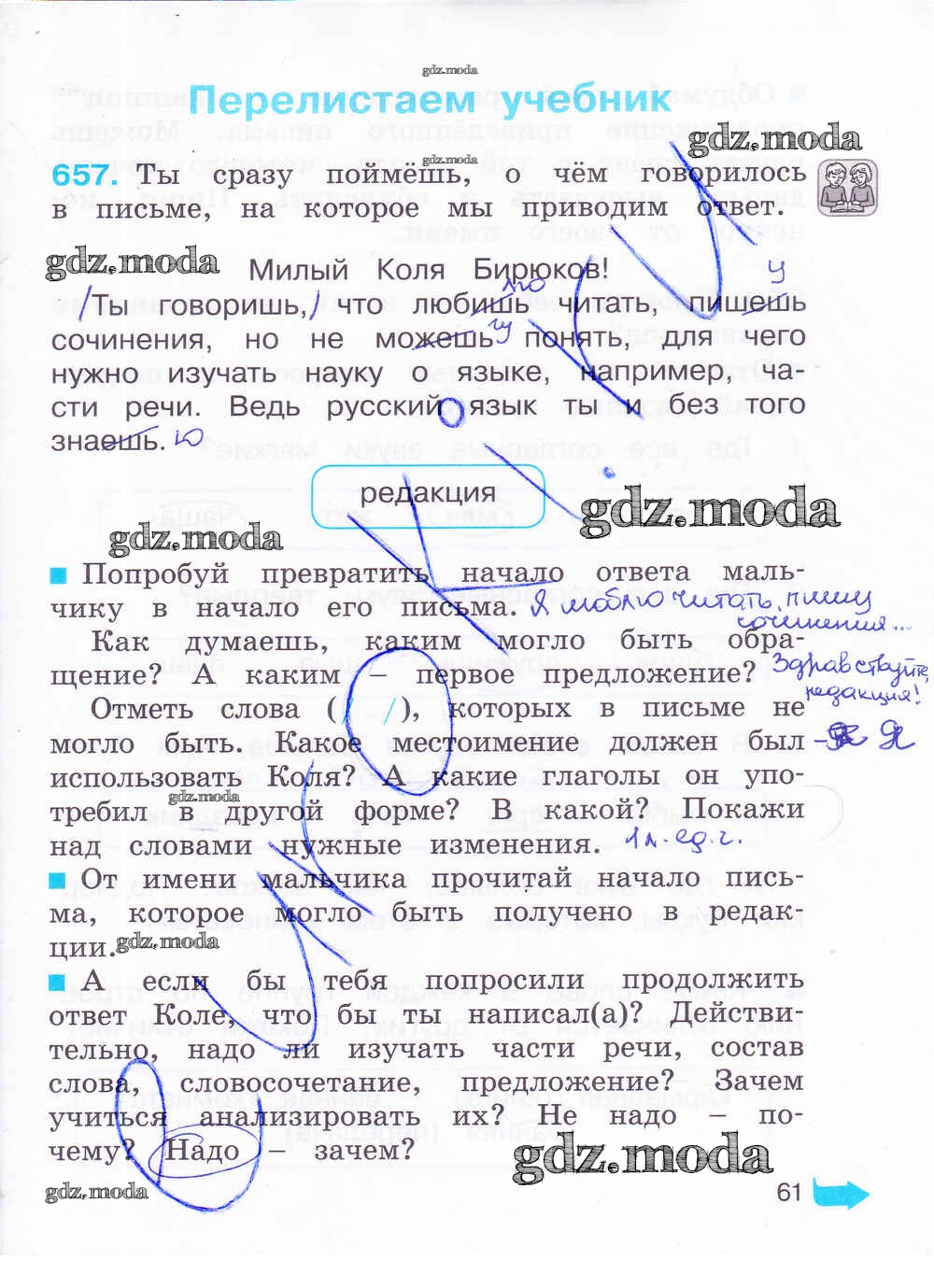 ОТВЕТ на задание № 61 Рабочая тетрадь по Русскому языку 4 класс Соловейчик Гармония