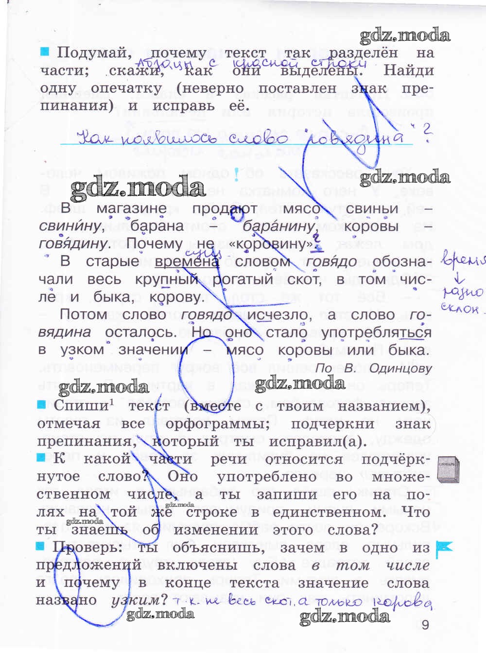 ОТВЕТ на задание № 9 Рабочая тетрадь по Русскому языку 4 класс Соловейчик Гармония