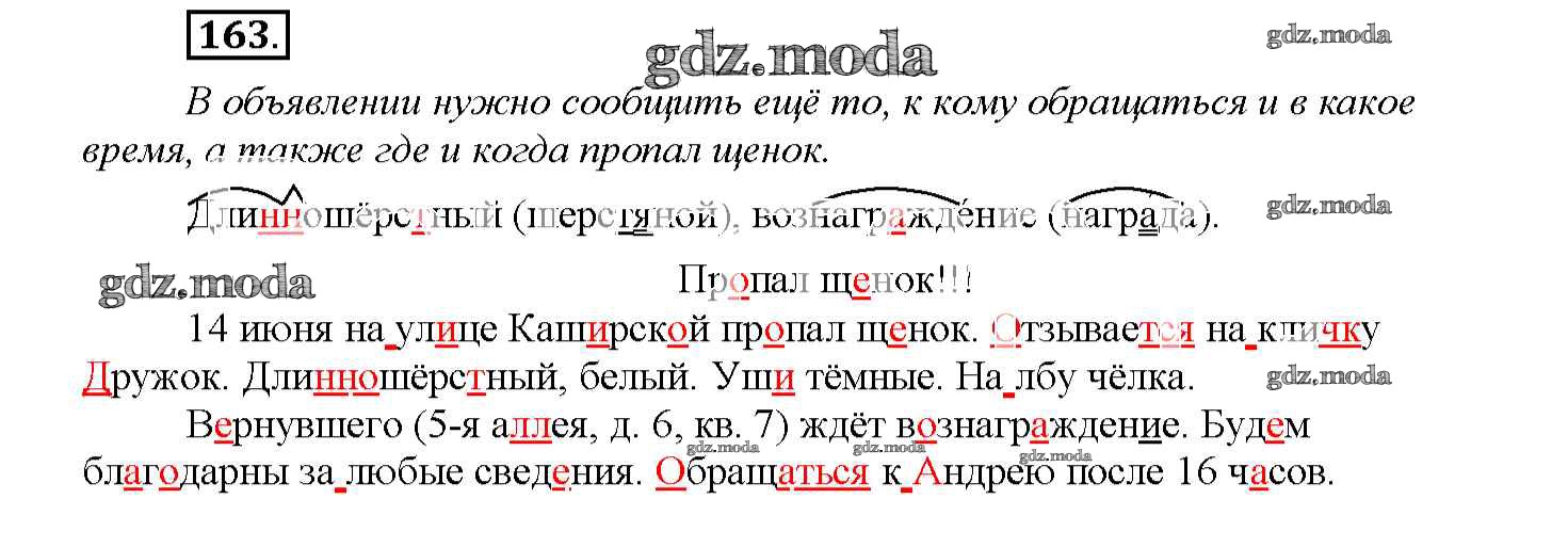 ОТВЕТ на задание № 163 Учебник по Русскому языку 4 класс Соловейчик Гармония