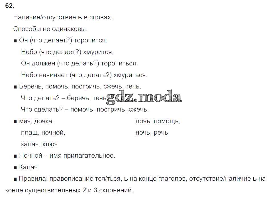 ОТВЕТ на задание № 62 Учебник по Русскому языку 4 класс Соловейчик Гармония