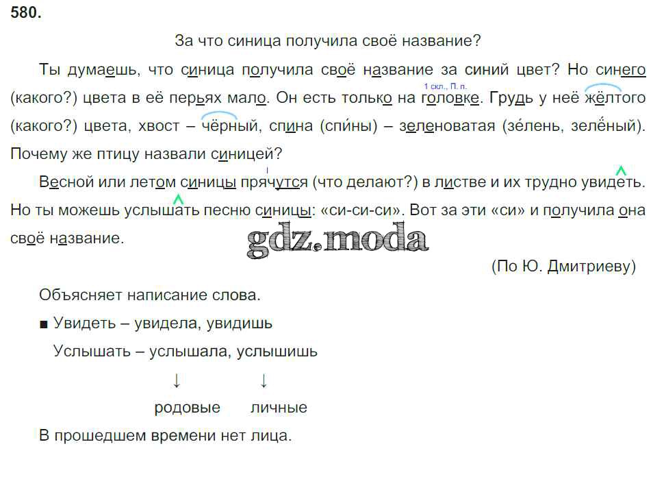 ОТВЕТ на задание № 580 Учебник по Русскому языку 4 класс Соловейчик Гармония