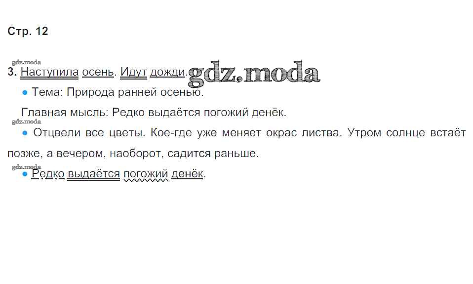 ГДЗ решение к заданию № 12 Русский язык 4 класс рабочая тетрадь Тихомирова Е.М. (к уч. Канакиной) Экзамен 2018 Часть 1, Часть 2 ФГОС бесплатно на гдз.мода!