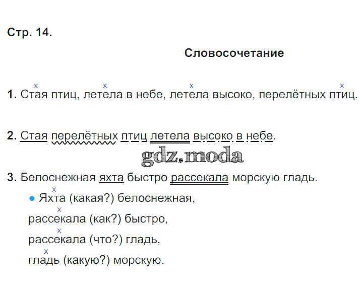 ГДЗ решение к заданию № 14 Русский язык 4 класс рабочая тетрадь Тихомирова Е.М. (к уч. Канакиной) Экзамен 2018 Часть 1, Часть 2 ФГОС бесплатно на гдз.мода!