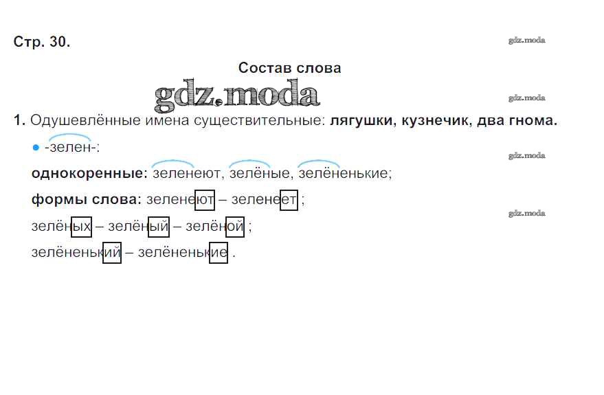 ГДЗ решение к заданию № 30 Русский язык 4 класс рабочая тетрадь Тихомирова Е.М. (к уч. Канакиной) Экзамен 2018 Часть 1, Часть 2 ФГОС бесплатно на гдз.мода!