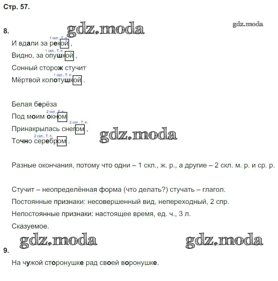 ГДЗ решение к заданию № 57 Русский язык 4 класс рабочая тетрадь Тихомирова Е.М. (к уч. Канакиной) Экзамен 2018 Часть 1, Часть 2 ФГОС бесплатно на гдз.мода!