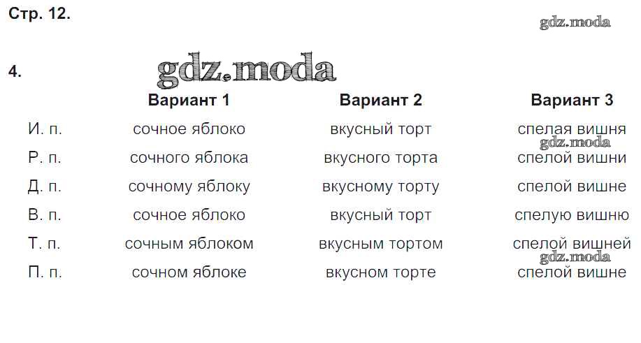 ГДЗ решение к заданию № 12 Русский язык 4 класс рабочая тетрадь Тихомирова Е.М. (к уч. Канакиной) Экзамен 2018 Часть 1, Часть 2 ФГОС бесплатно на гдз.мода!