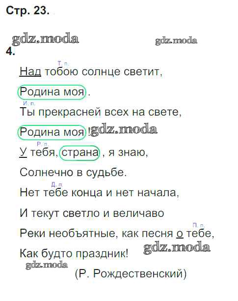 ГДЗ решение к заданию № 23 Русский язык 4 класс рабочая тетрадь Тихомирова Е.М. (к уч. Канакиной) Экзамен 2018 Часть 1, Часть 2 ФГОС бесплатно на гдз.мода!