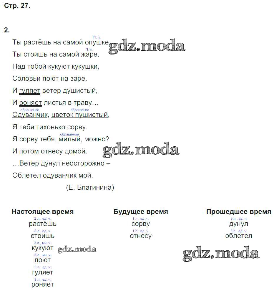 ГДЗ решение к заданию № 27 Русский язык 4 класс рабочая тетрадь Тихомирова Е.М. (к уч. Канакиной) Экзамен 2018 Часть 1, Часть 2 ФГОС бесплатно на гдз.мода!