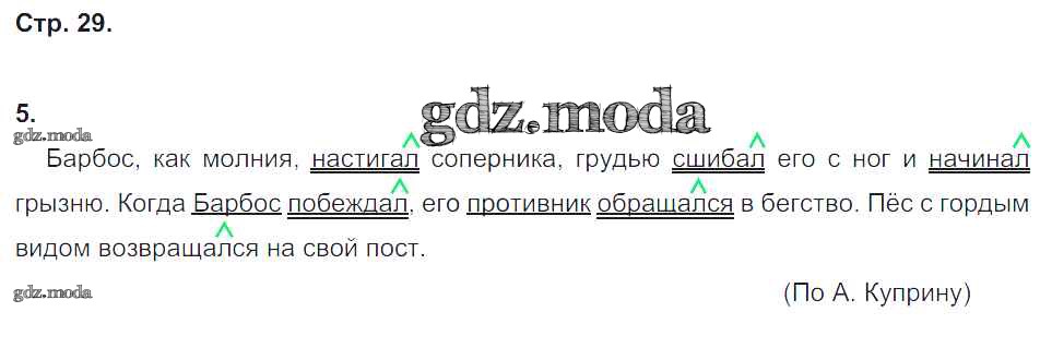 ГДЗ решение к заданию № 29 Русский язык 4 класс рабочая тетрадь Тихомирова Е.М. (к уч. Канакиной) Экзамен 2018 Часть 1, Часть 2 ФГОС бесплатно на гдз.мода!