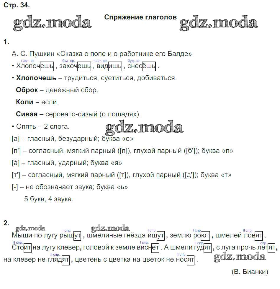 ГДЗ решение к заданию № 34 Русский язык 4 класс рабочая тетрадь Тихомирова Е.М. (к уч. Канакиной) Экзамен 2018 Часть 1, Часть 2 ФГОС бесплатно на гдз.мода!