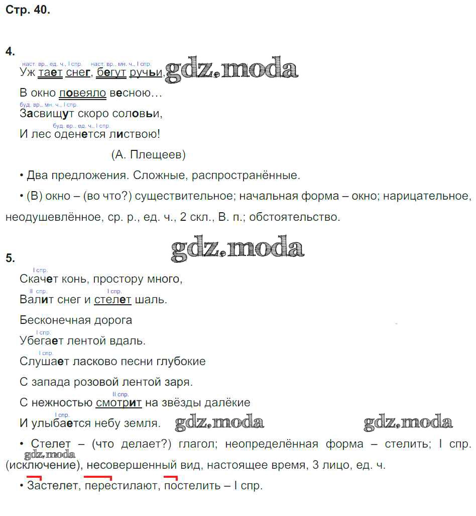 ГДЗ решение к заданию № 40 Русский язык 4 класс рабочая тетрадь Тихомирова Е.М. (к уч. Канакиной) Экзамен 2018 Часть 1, Часть 2 ФГОС бесплатно на гдз.мода!