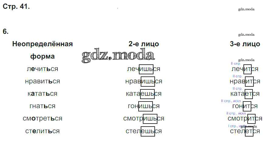 ГДЗ решение к заданию № 41 Русский язык 4 класс рабочая тетрадь Тихомирова Е.М. (к уч. Канакиной) Экзамен 2018 Часть 1, Часть 2 ФГОС бесплатно на гдз.мода!