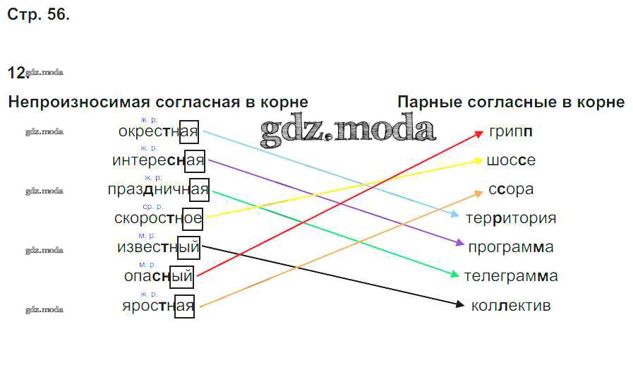 ГДЗ решение к заданию № 56 Русский язык 4 класс рабочая тетрадь Тихомирова Е.М. (к уч. Климановой) Экзамен 2016 Часть 1, Часть 2 ФГОС бесплатно на гдз.мода!