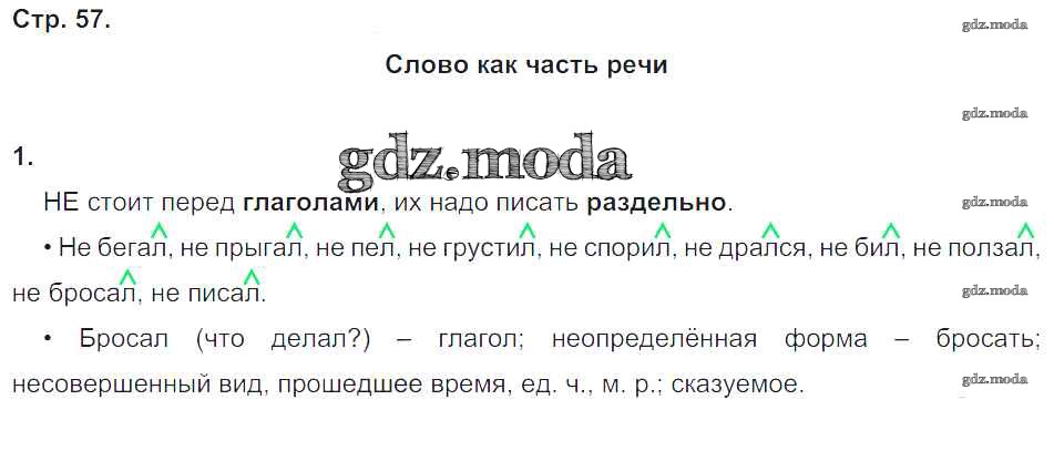 ГДЗ решение к заданию № 57 Русский язык 4 класс рабочая тетрадь Тихомирова Е.М. (к уч. Климановой) Экзамен 2016 Часть 1, Часть 2 ФГОС бесплатно на гдз.мода!