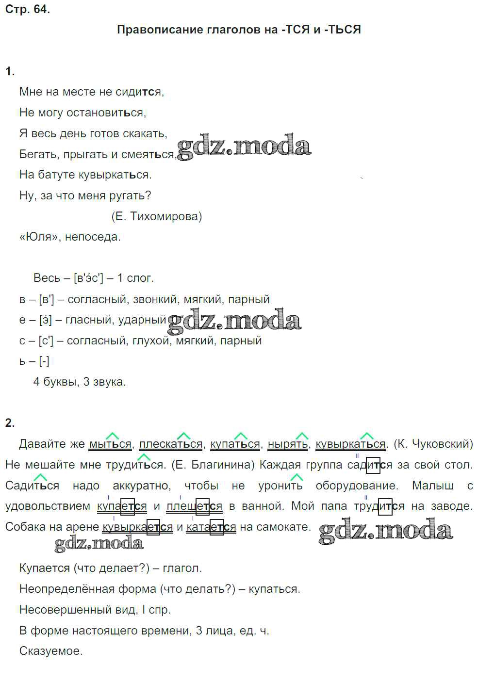ГДЗ решение к заданию № 64 Русский язык 4 класс рабочая тетрадь Тихомирова Е.М. (к уч. Климановой) Экзамен 2016 Часть 1, Часть 2 ФГОС бесплатно на гдз.мода!