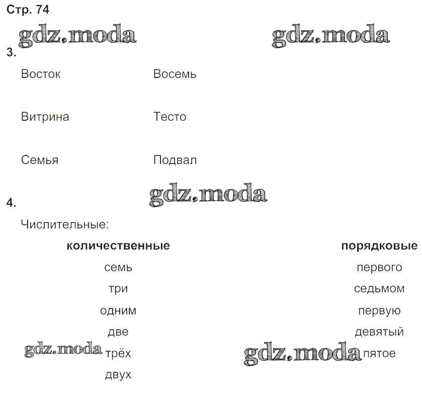 ГДЗ решение к заданию № 74 Русский язык 4 класс рабочая тетрадь Тихомирова Е.М. (к уч. Климановой) Экзамен 2016 Часть 1, Часть 2 ФГОС бесплатно на гдз.мода!