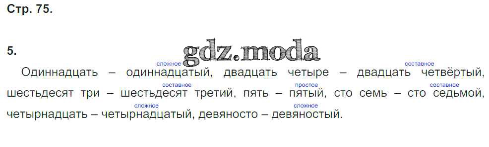 ГДЗ решение к заданию № 75 Русский язык 4 класс рабочая тетрадь Тихомирова Е.М. (к уч. Климановой) Экзамен 2016 Часть 1, Часть 2 ФГОС бесплатно на гдз.мода!