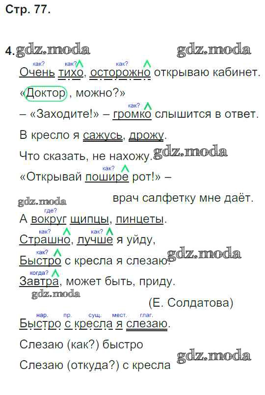 ГДЗ решение к заданию № 77 Русский язык 4 класс рабочая тетрадь Тихомирова Е.М. (к уч. Климановой) Экзамен 2016 Часть 1, Часть 2 ФГОС бесплатно на гдз.мода!