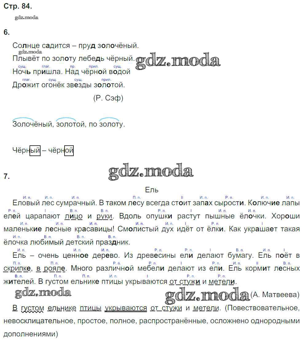 ГДЗ решение к заданию № 84 Русский язык 4 класс рабочая тетрадь Тихомирова Е.М. (к уч. Климановой) Экзамен 2016 Часть 1, Часть 2 ФГОС бесплатно на гдз.мода!
