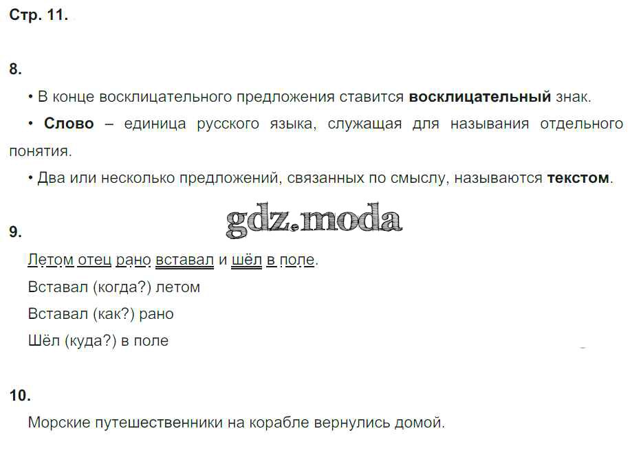 ГДЗ решение к заданию № 11 Русский язык 4 класс рабочая тетрадь Тихомирова Е.М. (к уч. Рамзаевой) Экзамен 2014 ФГОС бесплатно на гдз.мода!