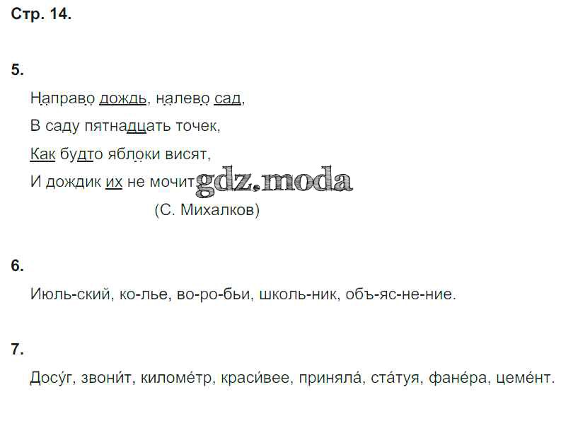 ГДЗ решение к заданию № 14 Русский язык 4 класс рабочая тетрадь Тихомирова Е.М. (к уч. Рамзаевой) Экзамен 2014 ФГОС бесплатно на гдз.мода!