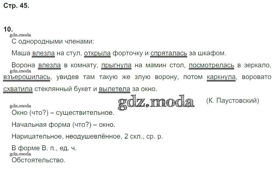 ОТВЕТ на задание № 45 Рабочая тетрадь по Русскому языку 4 класс Тихомирова УМК