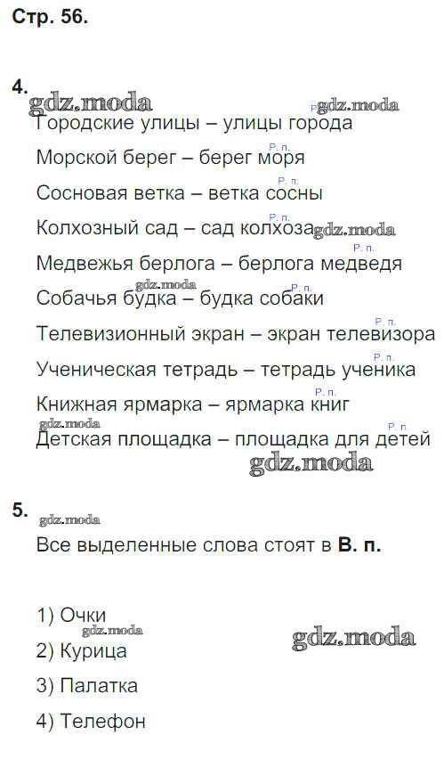 ОТВЕТ на задание № 56 Рабочая тетрадь по Русскому языку 4 класс Тихомирова УМК